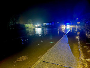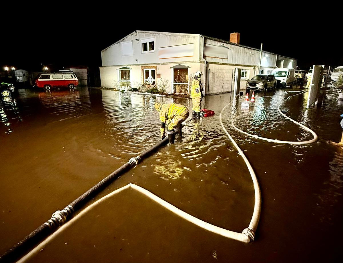 Mithilfe einer Tauchpumpe und der Heckpumpe des Löschfahrzeugs konnte der Pegel bereits nach kurzer Zeit gesenkt werden.