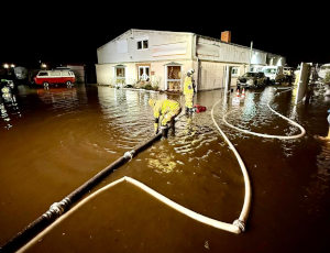 Die Feuerwehr Bentwisch war bereits vor Ort und pumpte an der Carbäk. Während die FF Bentwisch an der Carbäk gebunden war, stieg der Pegel am Gebäude eines Handwerksbetriebs in ca. 150 m Entfernung. Die FF Kussewitz hatte bereits mit Sandsäcken die Zugänge zum Gebäude gesichert. Der FF Mönchhagen wurde dieser Abschnitt zugeteilt mit der Aufgabe, den Pegel zu senken, um das Eindringen von Wasser ins Gebäude zu verhindern.