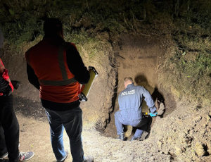 In etwa 75 Metern Entfernung vom Bahnübergang in Mönchhagen-Oberdorf wurden bei den derzeitigen Gleisarbeiten Munition aus dem 2. Weltkrieg entdeckt. Der Kampfmittelräumdienst, ein RTW, Mitarbeiter der Bahn und die Bundespolizei waren schon länger vor Ort. Da sich der Zünder der Munition in schlechtem Zustand befand, wurde entschieden, die Munition an Ort und Stelle zu sprengen. Ein Bagger hatte dazu schon vor unserem Eintreffen eine Grube ausgehoben, in der die Granate gesprengt werden sollte. Wir wurden nun für etwaige Brandschutz- und Evakuierungsmaßnahmen angefordert. Evakuiert wurden drei Häuser in unmittelbarer Nähe zum Sprengungsort, als Aufenthaltsort wurde der Gemeindesaal im Gerätehaus zur Verfügung gestellt, wo sie von Kameraden mit Kaffee versorgt wurden.