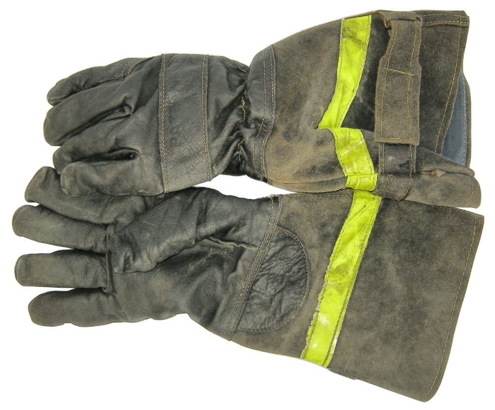 Die Handschuhe reichen weit über den Ärmel der jacke und werden am oberen Ende mit Klettverschlüssen eng um den Ärmel geschlossen, damit keine Glut oder Gegenstände hineinfallen können. Die Handschuhe verfügen über einen kleinen Karabinerhaken, um sie seitlich an der Jacke zu befestigen. Dadurch kann man sie nicht verlieren oder vergessen.