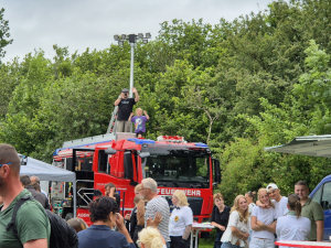 Neben verschiedenen Showeinlagen stellte auch das neue Löschfahrzeug ein Highlight dar. Besucher konnten sich das Auto ansehen und sich die technischen Einzelheiten erklären lassen.