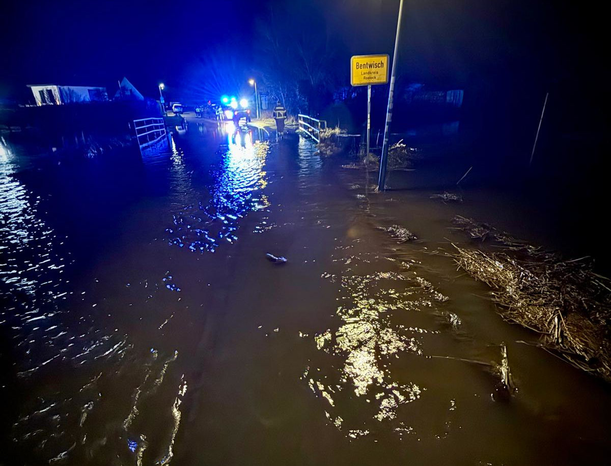 Die Feuerwehr Bentwisch war bereits vor Ort und pumpte an der Carbäk. Während die FF Bentwisch an der Carbäk gebunden war, stieg der Pegel am Gebäude eines Handwerksbetriebs in ca. 150 m Entfernung. Die FF Kussewitz hatte bereits mit Sandsäcken die Zugänge zum Gebäude gesichert. Der FF Mönchhagen wurde dieser Abschnitt zugeteilt mit der Aufgabe, den Pegel zu senken, um das Eindringen von Wasser ins Gebäude zu verhindern.