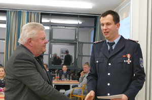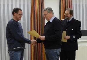 Andreas Dau, Beisitzer im Vorstand des Kreisfeuerwehrverbandes, führte die Ehrung im Namen des Landesfeuerwehrverbandes durch.