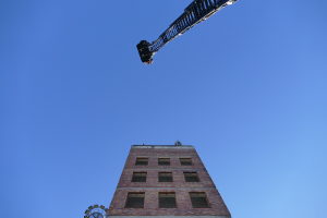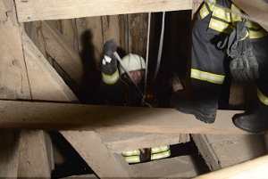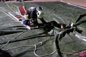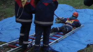 Gerüstes wurde dann mit einem Seil wieder aufgerichtet und gesichert.