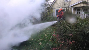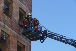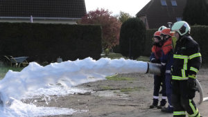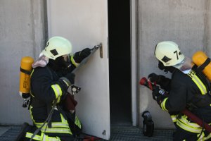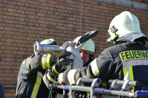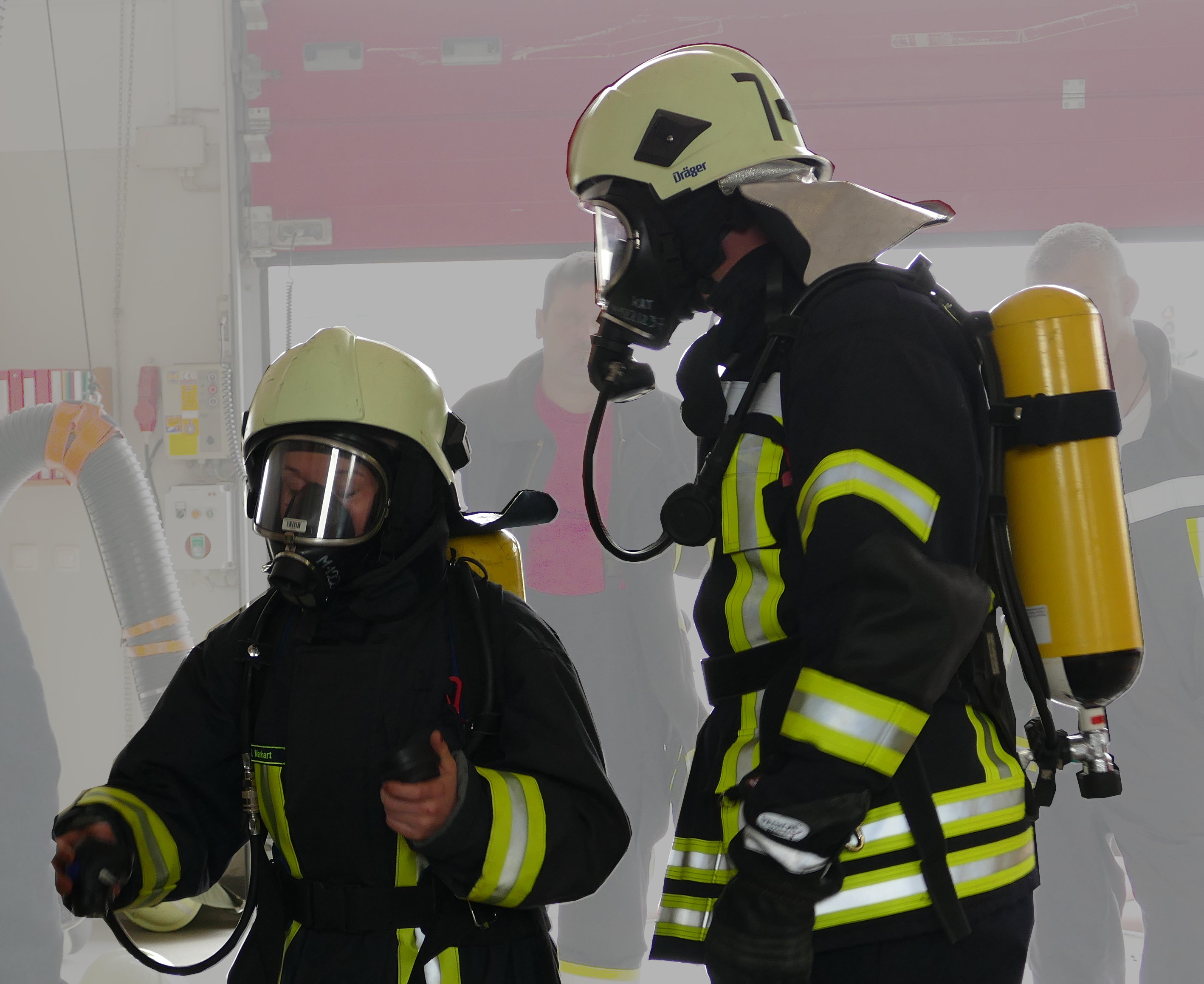Mit einem Atemschutzgerät können die Kameraden und Kameradinnen nur etwas mehr als 20 Minuten unterwegs sein, sodass bei langwierigen Suchaktionen die Trupps mehrfach abgelöst werden müssen. Entsprechend viele Atemschutztrupps müssen in einem solchen Fall, wie in der Übung simuliert, bereit stehen. Eine der etwa 20 Kameraden und Kameradinnen, die unter Atemschutz im Einsatz waren, war Sybille Markart, FFw Mönchhagen. „In einem unbekannten Gebäude suchen zu müssen und dabei vor lauter Rauch nichts sehen zu können, war eine wichtige Übung“, sagte sie anschließend. Der „Rauch“ stammte übrigens nicht von einem echten Feuer, sondern aus einer Nebelmaschine, und sollte für möglichst realistische Bedingungen sorgen.