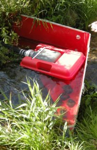 „Feuer breitet sich von unten nach oben aus, deshalb muss man auch von unten nach oben löschen“, erklärt Thomas Salzmann, stellv. Wehrführer der FFw Mönchhagen, „weil es sich sonst von unten von neuem ausbreitet.“ Zusammen mit Enrico Thoms und Daniel Buttig betreute er den Stand der FFw auf dem Mönchhäger Dorffest am 18. Juni. Hier konnten die Besucher anhand von wassergefüllten Übungslöschern die Bedienung von Feuerlöschern ausprobieren und sich an einem Schnittmodell Aufbau und Funktion erklären lassen. Die Rolle des Feuers übernahmen leere Konservendosen, die es umzuwerfen galt. Vor allem die Kinder hatten viel Spaß daran, aber auch einige Erwachsene „trauten“ sich. Hoffen wir, dass alle anderen bereits wussten, wie man mit einem Feuerlöscher umgeht …