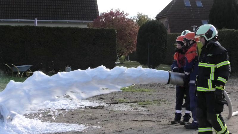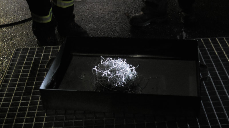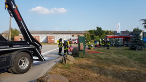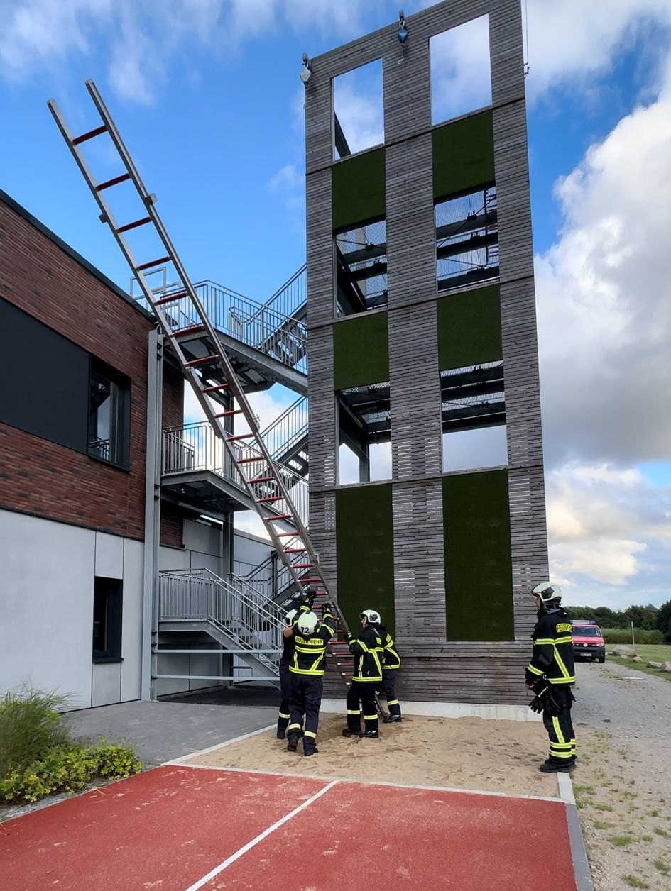 Manchmal stößt man auch auf Dinge, die man eigentlich nicht gebrauchen kann – so entdeckten zwei Kameradinnen der FFW Mönchhagen während der Übung einen Tank mit 10 000 Litern Diesel, was bei einem echten Brand eine gefährliche Situation gewesen wäre. Und auch moderne Baumaterialien können zum Problem werden – wie die Aluminiumwände der Gebäude, die den Funkverkehr behinderten.