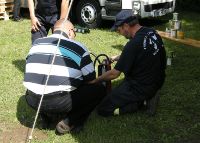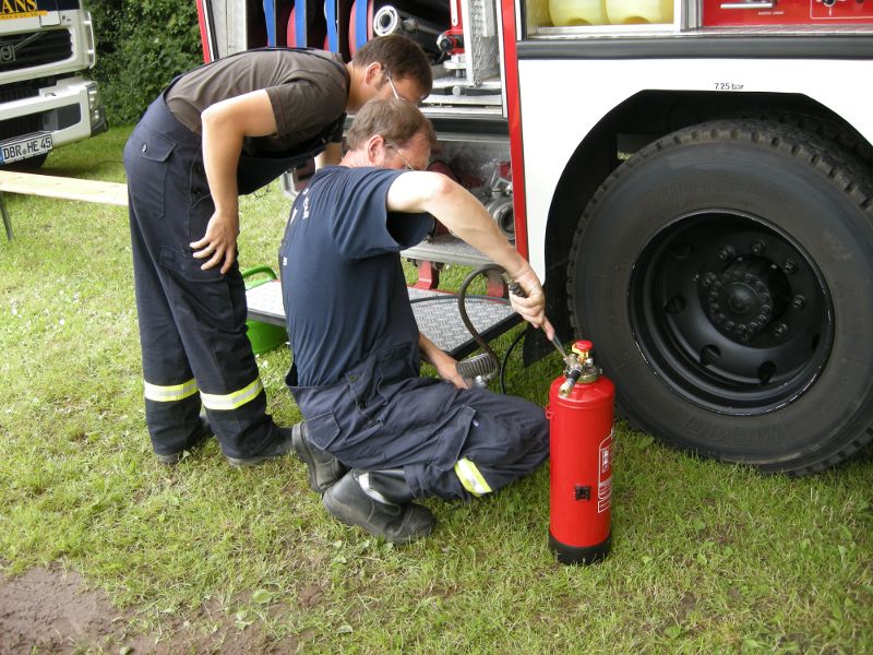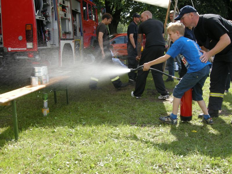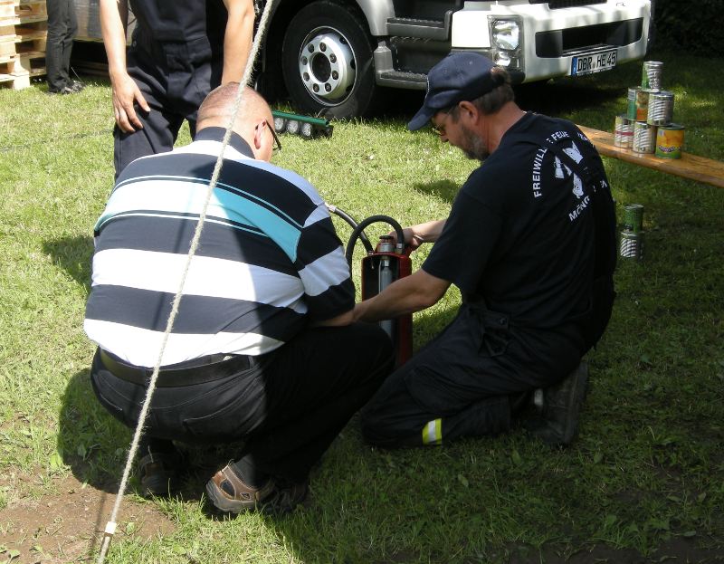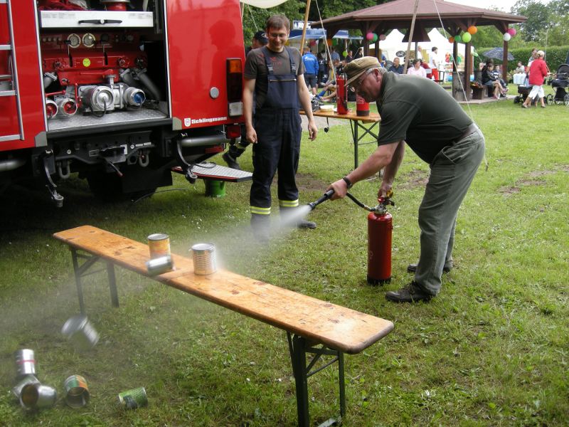 FFw zeigt auf dem Dorffest die Bedienung von Feuerlöschern