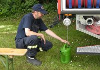 Im ersten Durchgang beim Wettkampf der Feuerwehren des Amtes und aus Graal-Müritz am 28. Mai in Blankenhagen sah es nicht gut aus für die Mönchhäger Kameraden. Immer düsterer wurden die Mienen, als ein kaputter Verteiler für eine viel zu lange Zeit sorgte. „Der Mittelausgang schloss nicht, deshalb floss dort zu viel Wasser weg und an den Strahlrohren reichte der Druck nicht“, erklärt Thomas Salzmann, FFw Mönchhagen. So dauerte es über 2 Minuten, bis der Behälter gefüllt war und die Signallampe aufleuchtete.