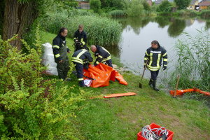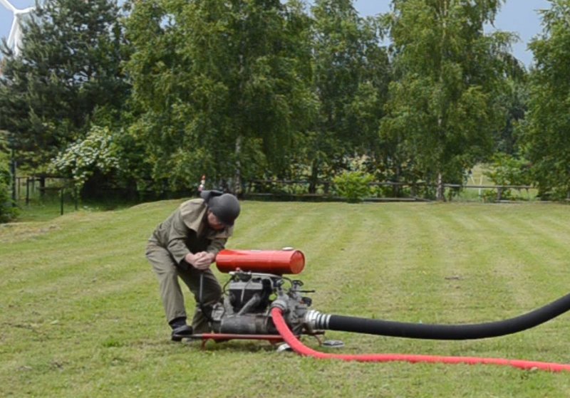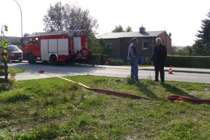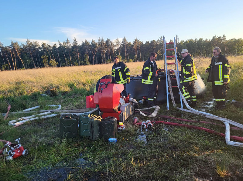 Die verbliebenen Kräfte fuhren zum Teich und bauten von dort gemeinsam mit der FF Blankenhagen zunächst eine Wasserversorgung von