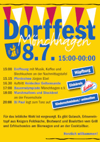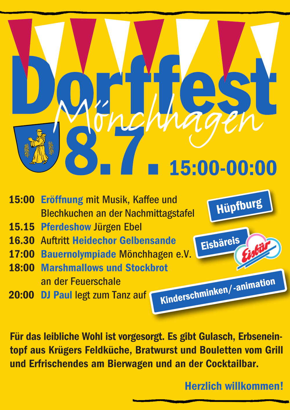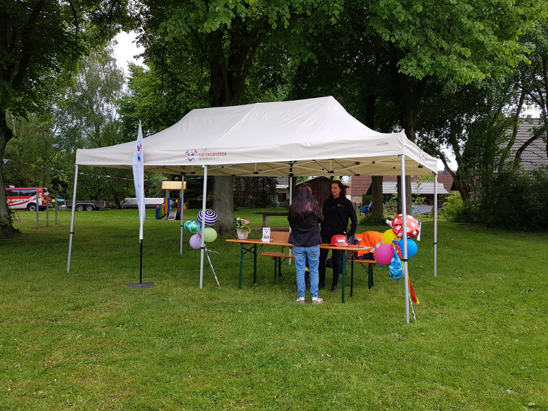 Am 28. Juni fand in Mönchhagen das alljährliche Dorffest statt – bei bestem Wetter. Auch der Feuerwehrverein Mönchhagen beteiligte sich wieder tatkräftig. Der Grill konnte dieses Jahr erstmalig im neuen Pavillon stehen, den die Gemeinde kürzlich anstelle des alten auf dem Festplatz hat errichten lassen.