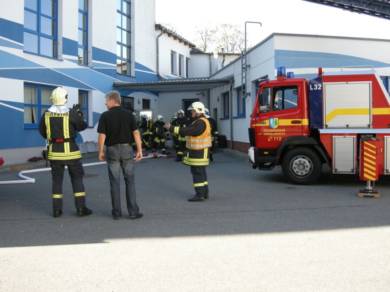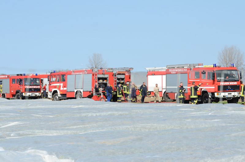 Am Freitag abend, 4. 11., fand in der alten Schweinemastanlage in Oberhagen eine Einsatzübung statt, an der die Wehren des Amtes Rostocker Heide und aus Graal-Müritz teilgenommen haben. Um das Zusammenspiel mehrerer Feuerwehren im Ernstfall zu üben, wird einmal im Jahr eine solche Einsatzübung abgehalten. Diesmal wurde ein Brand in einer Strohlagerhalle angenommen, der sich zu einem Großbrand entwickeln würde. Das Kommando an der Brandstelle hat der Einsatzleiter, i.d.R. der Wehrführer der „einheimischen“, also ortskundigen Feuerwehr. Bei großen Einsätzen wird er dabei von der Führungsgruppe unterstützt. Die eintreffenden Wehren melden sich bei der Führungsgruppe im Einsatzleitwagen, so dass diese genau weiß, welche Kräfte vorhanden sind. Der Einsatzleiter „bestellt“ dann, was er braucht, sodass er auch wirklich nur die Kräfte vor Ort hat, die er braucht (bzw. gerade gebrauchen kann).