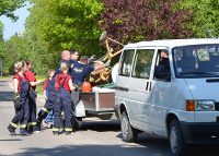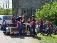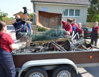 „Die Kinder möchten gern mal einen Ausflug zur Kartbahn machen. Da wir dafür nicht die nötigen Mittel haben, mussten wir eben erst einmal etwas dafür tun“, erzählt Sabrina Markart, Jugendwartin der FFw Mönchhagen. Das taten sie dann auch am 7. Mai und liefen bei beinah hochsommerlichem Wetter ab 10 Uhr durch das Dorf, um die zahlreich am Straßenrand abgestellten „Schrotthaufen“ einzusammeln. Es kamen mehr als 35 m3 Metallschrott zusammen!
