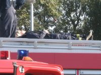 Nein, dies ist nicht der Beginn eines Krimis im Graal-Müritzer Lindenweg, sondern einer Einsatzübung der Feuerwehr. Punkt 17.50 Uhr heulten die Sirenen bei allen Wehren des Amtes Rostocker Heide und von Graal-Müritz und riefen zu einem Wohnhausbrand mit vermissten Personen. Wenige Minuten später übertönten die Martinshörner der Graal-Müritzer Wehr das Rauschen des Meeres, je nach Anfahrtsweg trafen die anderen wenig später ein. Das leer stehende Haus lag dann im Blaulicht nicht mehr so verlassen da, sondern war „umstellt“ von Löschfahrzeugen. An die 60 Feuerwehrleute waren in Wind und prasselndem Regen damit beschäftigt, Schlauchleitungen zu verlegen, Lichtmasten aufzustellen oder sich mit Pressluftatmern und Atemschutzmasken auszurüsten, um in dem verrauchten Gebäude nach den Vermissten suchen zu können.
