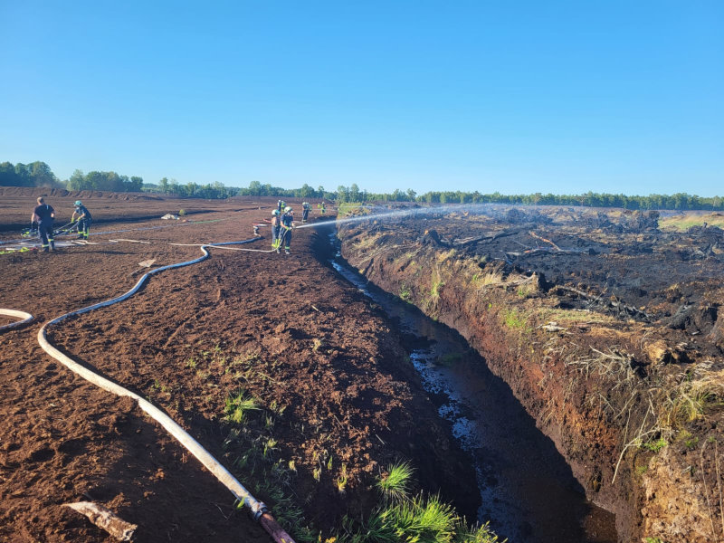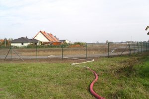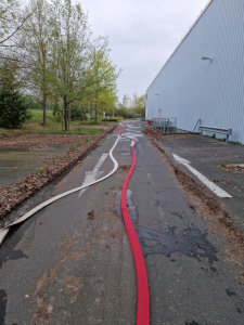 einem Hydranten über mehrere Fußwege zur Rückseite des Brandobjektes auf (ca. 250 m), um die dort eingesetzte FF Rövershagen mit Wasser zu versorgen. Danach wurde mit der TS eine Wasserentnahmestelle am Dorfteich eingerichtet und eine weitere Versorgungsleitung zur FF Poppendorf an der Vorderseite des Brandobjektes verlegt (ca. 350 m).