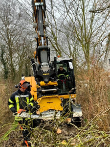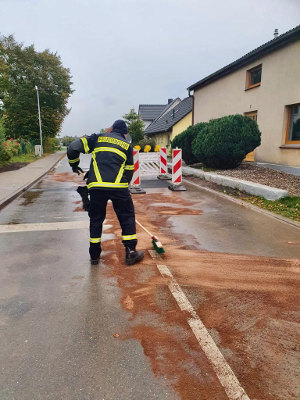 In etwa 75 Metern Entfernung vom Bahnübergang in Mönchhagen-Oberdorf wurden bei den derzeitigen Gleisarbeiten Munition aus dem 2. Weltkrieg entdeckt. Der Kampfmittelräumdienst, ein RTW, Mitarbeiter der Bahn und die Bundespolizei waren schon länger vor Ort. Da sich der Zünder der Munition in schlechtem Zustand befand, wurde entschieden, die Munition an Ort und Stelle zu sprengen. Ein Bagger hatte dazu schon vor unserem Eintreffen eine Grube ausgehoben, in der die Granate gesprengt werden sollte. Wir wurden nun für etwaige Brandschutz- und Evakuierungsmaßnahmen angefordert. Evakuiert wurden drei Häuser in unmittelbarer Nähe zum Sprengungsort, als Aufenthaltsort wurde der Gemeindesaal im Gerätehaus zur Verfügung gestellt, wo sie von Kameraden mit Kaffee versorgt wurden.