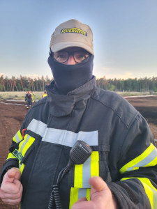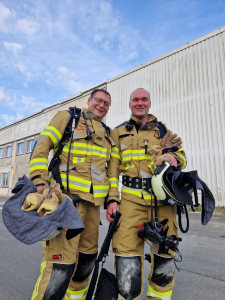 Endlich sind die Feuerwehranzüge für die Feuerfüchse da! Natürlich in Beige, denn auch die Einsatzabteilung stellt um auf beigefarbene Einsatzsachen.