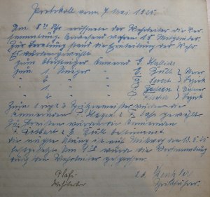 Andererseits hat die FFw Mönchhagen während der ersten Jahre (mehr oder weniger) genau Protokoll über ihre Versammlungen geführt, und die erste protokollierte Versammlung fand am 7. 5. 1925 statt. Aber war dies auch die Gründungsversammlung?