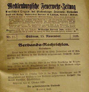 16. 10. 1928 | Aufnahme der FFw in den Meckl. Feuerwehrverband |