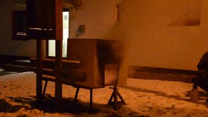 Im Dezember 2012 hatten wir Gelegenheit, einen Backdraft live zu erleben – allerdings an einem Modellhaus, also ein paar Nummern kleiner als in Wirklichkeit. Ein Kamerad der FFw Gelbensande war vor einiger Zeit auf die Idee gekommen, ein Holzhaus zu bauen, um an diesem Effekte wie Flashover und Backdraft zeigen zu können. Das Modellhaus ist nicht aus Massivholzplatten gebaut, sondern aus OSB-Platten, damit die nötige Menge Rauchgas entsteht.