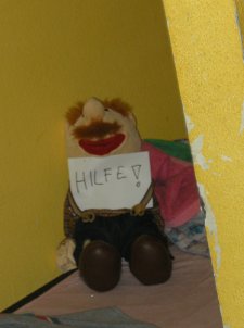 Jetzt wird auch klar, was damit gemeint ist, dass der Wassertrupp „zweiter Angriffstrupp“ wird. Der Küchenbrand musste ja auch noch gelöscht werden – da der Angriffstrupp aber bereits mit der Suche beschäftigt war, kam nun der Wassertrupp ebenfalls als Angriffstrupp zum Einsatz und übernahm das Löschen des Feuers. (Eigentlich müssten diese beiden Kameraden natürlich auch Atemschutzgeräte tragen – da aber die Atemschutzmasken nach jedem Gebrauch zur Überprüfung müssen, wurde bei dieser Übung darauf verzichtet.)