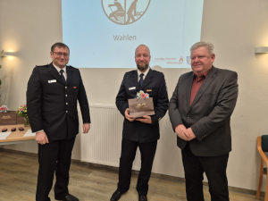 Der wichtigste Tagesordnungspunkt waren die Wahlen – die Amtszeit des Wehrführers Marcel Kuhz, des stellv. Wehrführers Daniel Buttig und des Gruppenführers im Vorstand Thomas Salzmann war abgelaufen. Alle drei kandidierten wieder für ihre Posten und wurden wieder gewählt. Wir gratulieren den dreien herzlich!