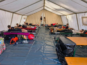 Im Rahmen einer Nachbesprechung bei gemeinsamen Abendessen konnten sich alle Beteiligten noch einmal aussprechen. Sie wurden zudem über die Angebote und Möglichkeiten einer fachkundigen Betreuung im Rahmen der Einsatznachsorge durch geschultes Personal informiert (Zum Nachlesen gibt es diese Information auch hier auf unserer Internetseite: Einsatznachsorge)