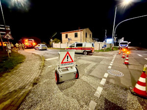 In etwa 75 Metern Entfernung vom Bahnübergang in Mönchhagen-Oberdorf wurden bei den derzeitigen Gleisarbeiten Munition aus dem 2. Weltkrieg entdeckt. Der Kampfmittelräumdienst, ein RTW, Mitarbeiter der Bahn und die Bundespolizei waren schon länger vor Ort. Da sich der Zünder der Munition in schlechtem Zustand befand, wurde entschieden, die Munition an Ort und Stelle zu sprengen. Ein Bagger hatte dazu schon vor unserem Eintreffen eine Grube ausgehoben, in der die Granate gesprengt werden sollte. Wir wurden nun für etwaige Brandschutz- und Evakuierungsmaßnahmen angefordert. Evakuiert wurden drei Häuser in unmittelbarer Nähe zum Sprengungsort, als Aufenthaltsort wurde der Gemeindesaal im Gerätehaus zur Verfügung gestellt, wo sie von Kameraden mit Kaffee versorgt wurden.