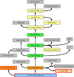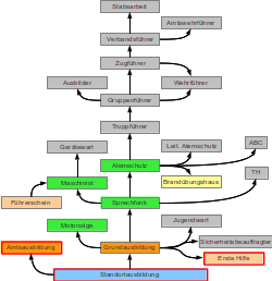 Die Ausbildung findet teilweise am Standort statt und teilweise durch Lehrgänge auf Kreis- oder Landesebene.
