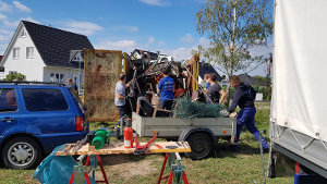 „Die Kinder möchten gern mal einen Ausflug zur Kartbahn machen. Da wir dafür nicht die nötigen Mittel haben, mussten wir eben erst einmal etwas dafür tun“, erzählt Sabrina Markart, Jugendwartin der FFw Mönchhagen. Das taten sie dann auch am 7. Mai und liefen bei beinah hochsommerlichem Wetter ab 10 Uhr durch das Dorf, um die zahlreich am Straßenrand abgestellten „Schrotthaufen“ einzusammeln. Es kamen mehr als 35 m3 Metallschrott zusammen!