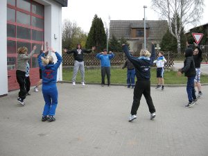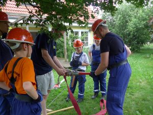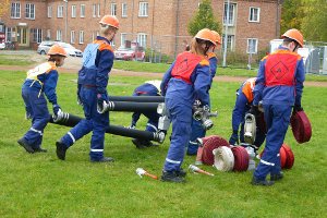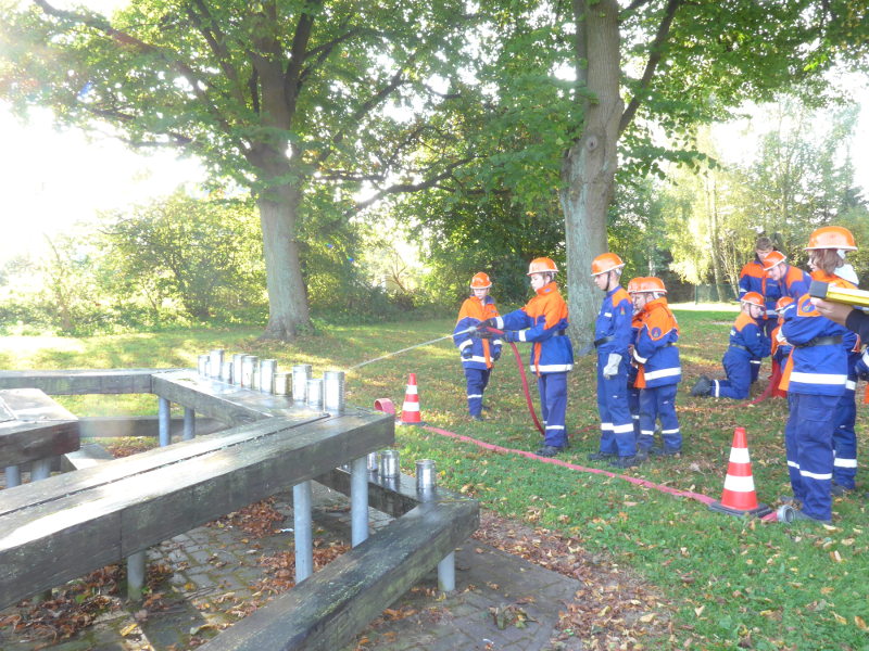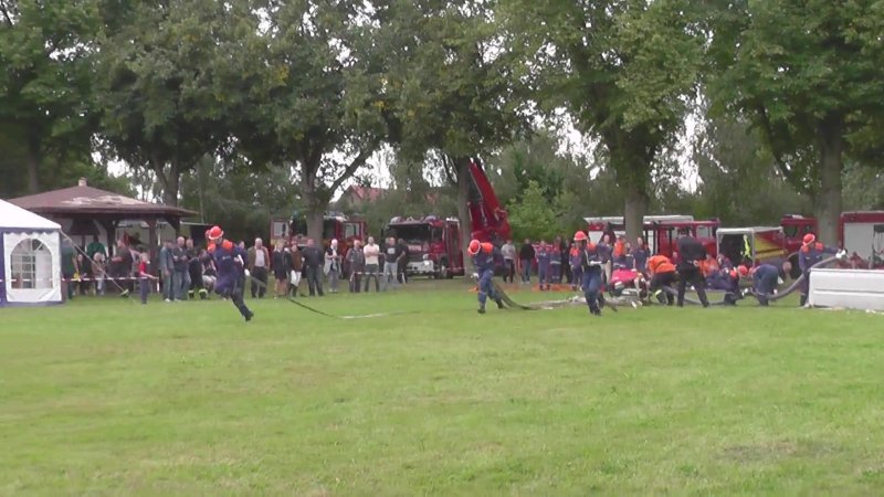 Am 8. September hatte die FFw Lambrechtshagen uns zur Teilnahme am Hindernismarsch eingeladen. Mit einer Erwachsenen- und einer Jugendmannschaft fuhren wir also nach Lambrechtshagen. Im Wesentlichen waren die Aufgaben für die Erwachsenen und die Jugendmannschaften gleich – nur dass wir 5, statt 4 Sauglängen zu einem Kreis verbinden mussten und statt das Löschfahrzeug zu ziehen, mussten wir „Feuer löschen“ mit Wasserbomben. Beim Getränke-Erraten brauchten wir auch kein hopfenhaltiges Zeug zur Nervenberuhigung wie die Erwachsenen, sondern bekamen so irre gesundes und vitaminreiches Zeug wie Cranberry- oder Holundersaft.