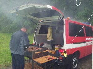 Nach erfolgreichem Einsatz ging es zurück ins Gerätehaus, wo bereits leckere Burger auf dem Grill lagen. Nach einem ruhigen Film-Abend beendete ein weiteres Feuer den verdienten Schlaf, diesmal direkt um die Ecke, am Anbau des Gerätehauses. Der konnte unsere erpobte JFw kaum noch beeindrucken und wurde rasch gelöscht.