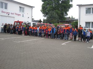 Unser Ferienlager in Prora auf Rügen fand vom 4.7.2011 bis zum 9.7.2011 statt. Der Amtsjugendwart Lutz Konerow konnte 5 Jugendfeuerwehren mit insgesamt 71 Personen zum Ferienlager begrüßen. Die Jugendfeuerwehrmitglieder übernachteten in unseren großen Feuerwehrzelten auf Feldbetten und starteten in eine Woche mehr oder weniger Urlaub. In diesem Ferienlager haben wir wieder viel erlebt. Unter anderem am Dienstag eine Kutterfahrt entlang der Kreidefelsen mit traumhaften Ausblicken. Am Abend wurde in gemütlicher Runde Stockbrot am Lagerfeuer gebacken. Am Mittwoch besuchten wir den Kletterwald Prora, dort wurden 11 Parcours unterschiedlicher Schwierigkeitsgrade geklettert, bei denen jedes Jugendfeuerwehrmitglied seine körperliche Fitness unter Beweis stellen konnte. Danach machten wir einen Ausflug in den Rügenpark Gingst, dort waren viele bekannte Bauwerke in Miniaturform zu bewundern. Durch den dort vorhandenen Freizeitpark mit vielen lustigen Attraktionen kam auch hier der Spaß für Groß und Klein nicht zu kurz. Zur Mitternachtsstunde war die Nacht erst einmal zu Ende, mit Fackeln und spannenden Schauermärchen erkundeten wir bei unserer traditionellen Nachtwanderung 1,5 Stunden lang die Umgebung unseres Zeltplatzes. Gegen 2 Uhr gingen dann alle erschöpft wieder ins Bett. Der nächste Tag lief somit erst einmal ruhig an – es wurde ein spannendes Vollyballtunier mit 10 Mannschaften aus unseren Jugendfeuerwehrlern und Betreuern auf dem Zeltplatz veranstaltet. Nach der großen Anstrengung gingen wir noch gemeinsam in der Ostsee baden und machten uns dann auf den Weg zu den Störtebeker Festspielen auf der Naturbühne Ralswiek. Am Freitag machten wir einen Ausflug zur FFW Bergen, dort bekamen wir interessante Einblicke in die Entwicklung der Wehr und bestaunten die Einsatzfahrzeuge. Nach dem lehrreichen Besuch in der FFW fuhren wir ein Stück weiter zur Inselrodelbahn Bergen. Trotz schlechten Wetters ließen wir uns die Laune nicht verderben und sausten einige Male die Rodelbahn hinunter. Abends grillten und belegten wir gemeinsam Hamburger und ließen den letzten Abend mit einer Kinderabschlussdisco ausklingen. So konnten wir nach einer Woche Spaß, Action und teilweise nervenraubender Anstrengung glücklich und zufrieden wieder nach Hause fahren.