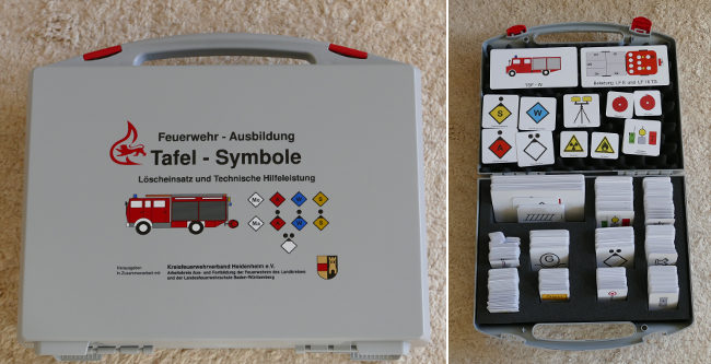 Mit Kärtchen können Einsatzszenarien an einem Whiteboard aufgebaut und nachgespielt werden. Herausgegeben wurde der Koffer vom Kreisfeuerwehrverband Heidenheim.