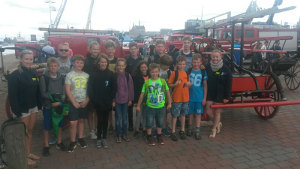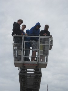 Am Donnerstag ging es zurück in die Heimat, aber natürlich nur als Tagesausflug. Denn schließlich konnten wir uns ja nicht die Deutschen Feuerwehrmeisterschaften in Rostock entgehen lassen. Zuerst testeten wir unser Wissen bei einem Wissenstest, sahen bei einer Feuerwehrtauchübung zu und besichtigten viele neue und alte Feuerwehrautos sowie ein Feuerwehrboot. Das Highlight allerdings waren die Wettkämpfe im Hakenleiter steigen. Auf der Zuschauertribüne feuerten wir lautstark die Teilnehmer aus unserem Amtsbereich an.
