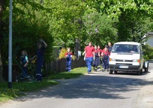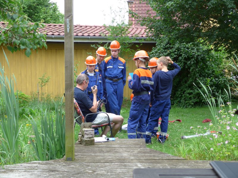 Bei selbstgebackenem Kuchen und Tee wurde der Einsatz ausgewertet und das Einsatzprotokoll geschrieben. Kurze Zeit später gab es die nächste Alarmierung: Wieder eine unklare Rauchentwicklung. Die Jugendfeuerwehr stellte schnell fest, dass ein Bürger (außerhalb der Verbrennzeit!) Grünschnitt verbrannte. Was natürlich nicht erlaubt ist. Der Gruppenführer sprach mit dem Eigentümer, da dieser jedoch völlig uneinsichtig war, forderte die JFw die „Polizei“ nach. Der Mann löschte schließlich das Feuer, bekam aber einen Bescheid über ein Ordnungsgeld von der Polizei.