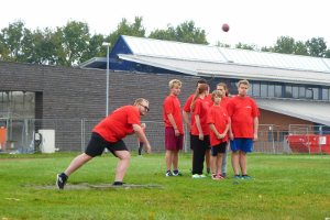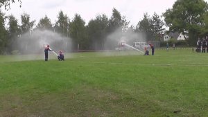 Nachdem die Jugendfeuerwehrmitglieder nun lange genug still sitzen mussten, galt es nun aufbrechen zu den Spiel- und Spaßwettkämpfen. Sechs verschiedene Stationen betreute das Team der FFw Mönchhagen. Es mussten Dosen von einer Bank gespritzt werden, verschiedene Feuerwehr-Armaturen zusammengeschraubt werden und Ping-Pong-Bälle in Becher geschlagen werden. Zwei weitere Ping-Pong-Bälle mussten so schnell wie möglich durch einen B-Schlauch bugsiert werden und auch das Stiefel werfen fehlte nicht. (Hier bei stellte Mönchhagen sicher einen Rekord auf, der nur leider nicht zählte – denn der Stiefel flog etliche Meter in die Höhe, statt in die Weite.) Nur mit einem Schwamm musste Wasser vom einen Ende eines Balkens zum anderen transportiert werden und der Kletterbogen auf dem neuen Generationenspielplatz sollte in 5 min von möglichst vielen Kindern überquert werden. Besondere Konzentration erforderte schließlich noch das Eier-Laufen durch einen kleinen Hindernisparcours.