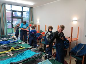 Etwa um 20 Uhr zogen wir dann mit Sack und Pack zu unserem Schlafquartier in die Sporthalle um. Um 22 Uhr war Nachruhe – erst mal!!!