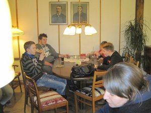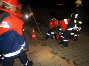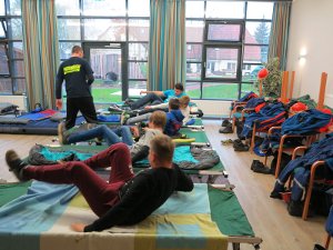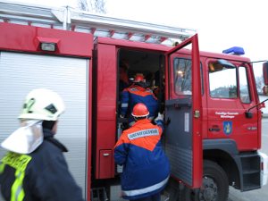 Nun aber erst mal ganz von vorne: Am 22. November trafen wir uns alle um 14 Uhr im Feuerwehrgebäude. Wir bereiteten unsere Schlafstätte für diese Nacht im Gemeindefestsaal vor. Nach einem Funkauffrischungskurs und einer kurzen Fahrzeugkunde gab es gegen 16 Uhr Kaffee und Kuchen und dann war es auch schon soweit, der 1. Einsatz!