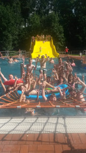 Am nächsten Tag erwartete uns der Kinderspielpark in Tessin. Dort war für jeden, ob Groß oder Klein, etwas dabei. Zum einen konnte man sich an einer 12 m hohen Kletterwand ausprobieren oder sich auf dem Trampolin auspowern. Auch beim Airhockey und Tischfußball haben wir uns aneinander gemessen. Am Nachmittag nutzten wir noch das schöne Wetter und fuhren zum Waldbad nach Stavenhagen.