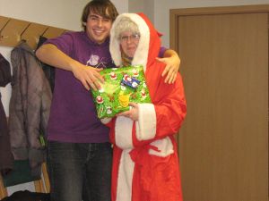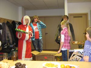 Nun war es auch endlich soweit – der Besuch des Weihnachtsmannes stand bevor. Jeder musste etwas vortragen, und nach vielen verschiedenen Gedichten und Liedern bekam jedes Mitglied der Mönchhäger Jugendfeuerwehr einen Pullover mit dem Aufdruck