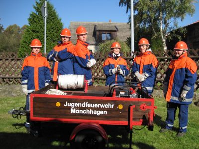 Am 31. März 2012 feierte die Jugendfeuerwehr Mönchhagen ihr zwanzigjähriges Bestehen. Als Jugendfeuerwehr existiert sie seit 1992 – die Jugendarbeit der Feuerwehr Mönchhagen reicht jedoch viel weiter zurück, wie wir aus den Aufzeichnungen der Freiwilligen Feuerwehr Mönchhagen wissen; nämlich bis zur Gründung einer Pionierlöschgruppe im Jahr 1961. Während es seit etwa 2000 eigene Rechenschaftsberichte der Jugendwarte gibt, müssen wir für die früheren Zeiten auf die Protokolle und Rechenschaftsberichte sowie einige amtliche Schreiben der und an die Erwachsenenwehr zurückgreifen, wobei sich trotz der lückenhaften Einträge ein ganz anschauliches Bild ergibt.