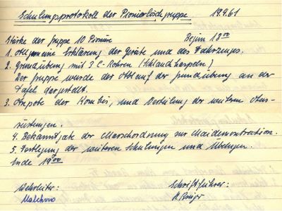 Schulungsprotokoll der Pionierlöschgruppe 19. 4. 1961, Beginn 18.00 Uhr