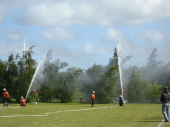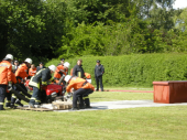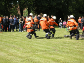 ihre Tragkraftspritzen „in Stellung“ und nach dem Startkommando wirbelten sie – durchtrainiert und heiß auf den